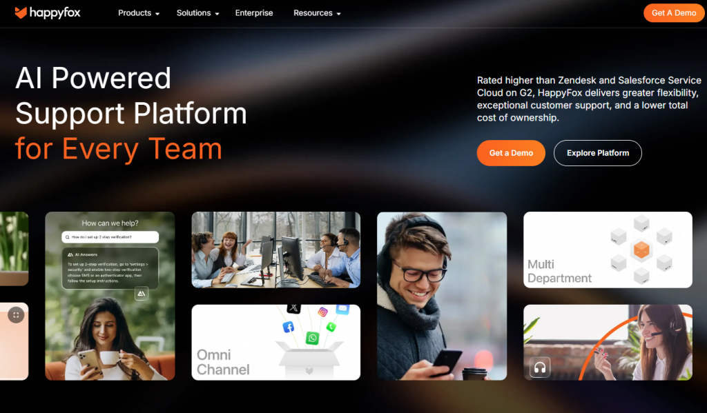 HappyFox offers an AI-enhanced support platform with strong capabilities in knowledge management and self-service optimization, aimed at improving agent productivity and customer satisfaction across multi-channel support environments.