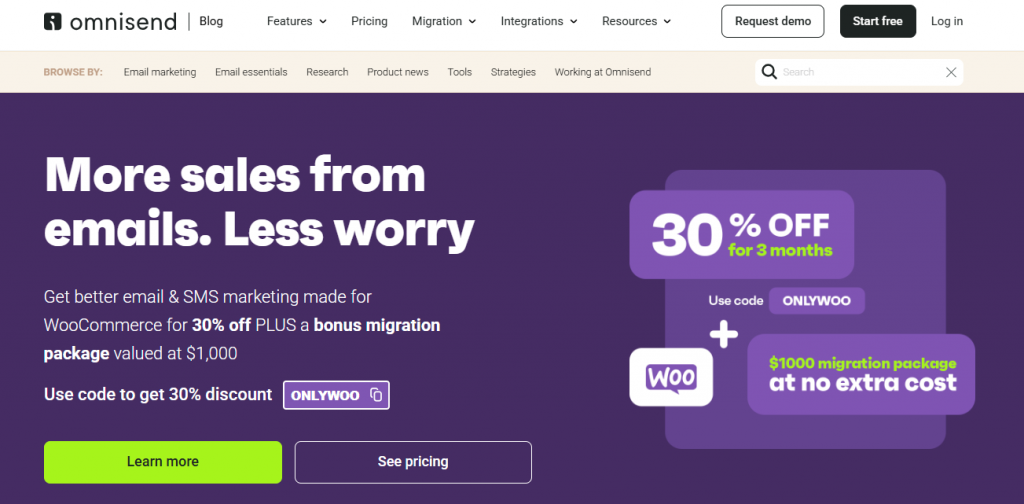 Omnisend Marketing Automation delivers powerful product recommendation capabilities that extend across multiple customer touchpoints. This plugin stands out because it doesn’t limit recommendations to your website. It delivers personalized suggestions through email, SMS, push notifications, and other channels in a coordinated strategy.