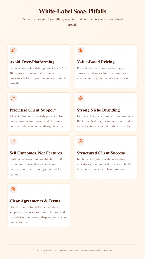 Avoiding these mistakes turns white-label SaaS from a side experiment into a repeatable business. The advantage does not come from more tools. It comes from focus, pricing discipline, and consistent customer outcomes.
