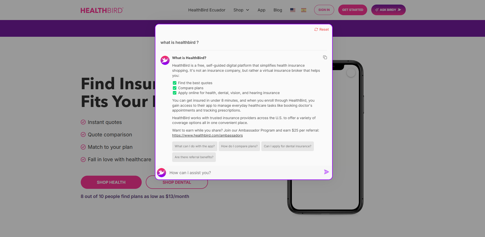 AI Helpdesk Integration: Deployed an AI assistant that pulls information from HealthBird's comprehensive knowledge base to ensure accurate, consistent responses to customer inquiries.